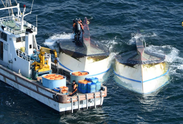 一艘台湾货船撞翻两艘日本渔船!(1)